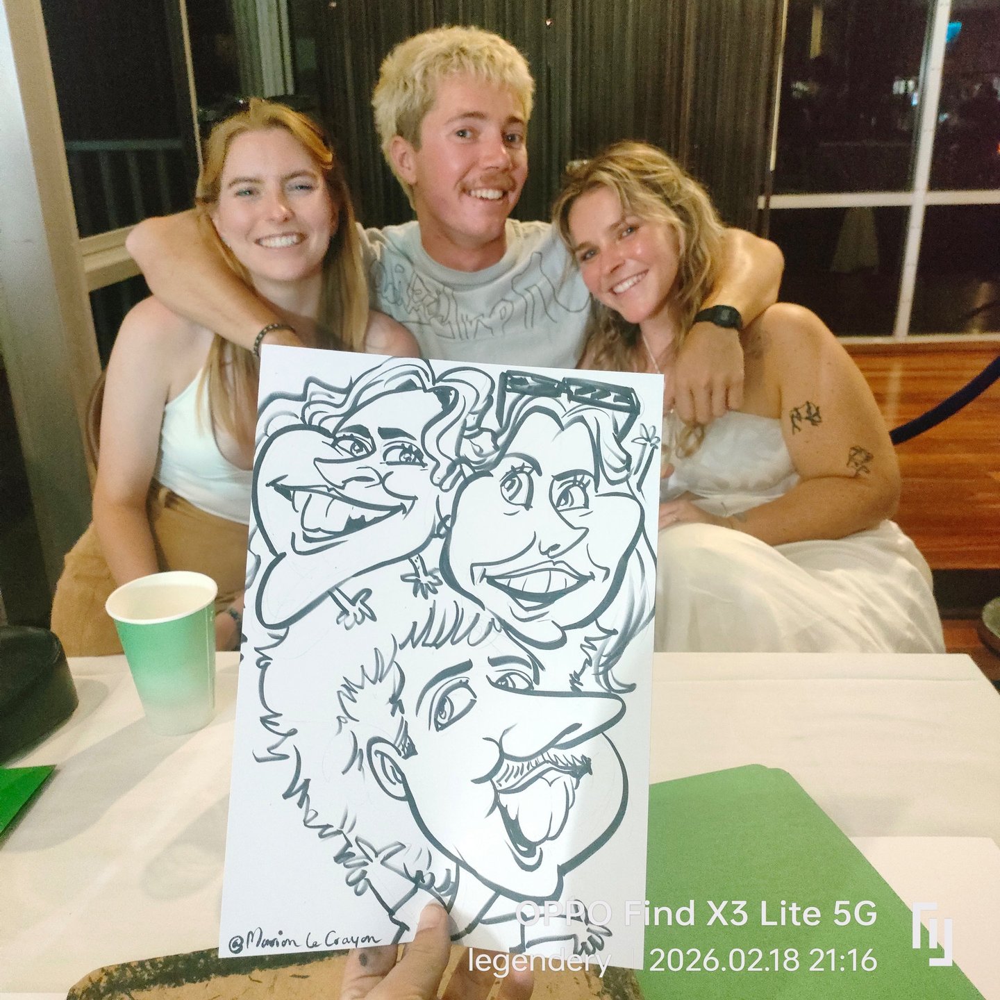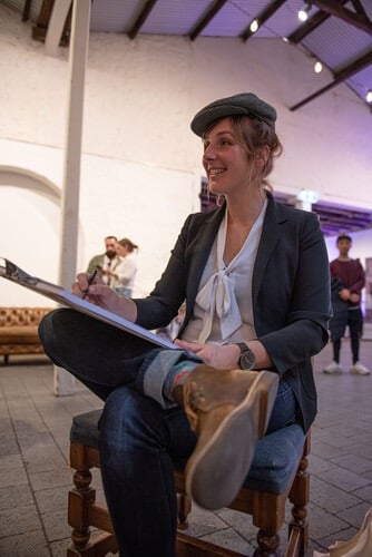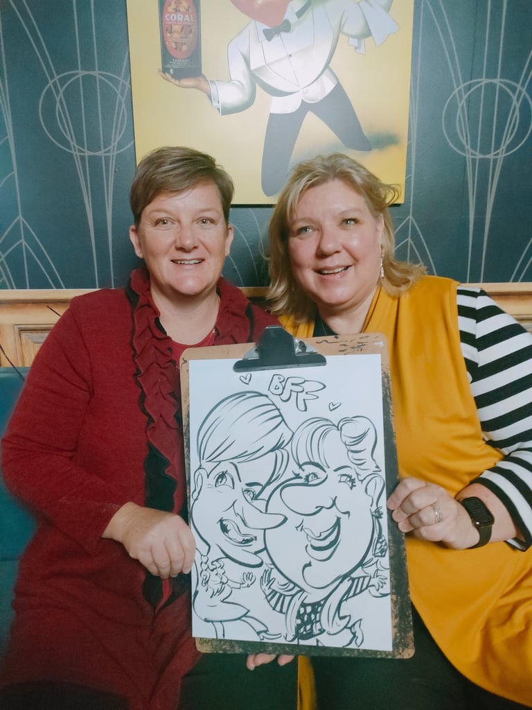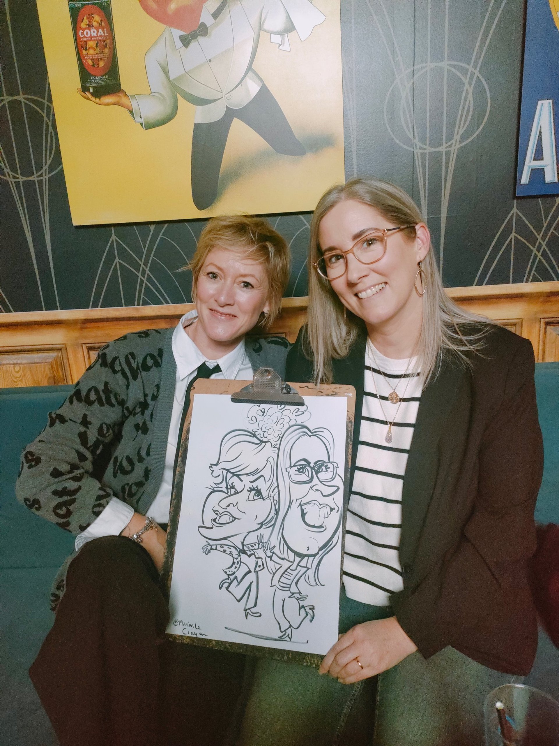 “I […] hired Marion as entertainment for our corporate Christmas party in December 2021. Marion was extremely accommodating and welcoming, and her drawings were incredible. She really has a talent. Upon returning to the office this year, our team are still talking about how fab their drawings were. I would definitely recommend Marion and would happily use her for future events!“